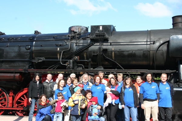 10 Jahre besteht er schon, der aus dem Horber Gospelchor entstandene Chor Gospeltrain. Ganz im Zeichen des Zuges stand deshalb auch der Jubiläumsausflug. Bei eisigen Temperaturen trafen sich die SängerInnen mit Freunden und Familien in Blumberg und ließen sich in frühe Eisenbahn-Zeiten zurückversetzen. Was gab es da nicht alles zu sehen: ein voll restauriertes Reiterstellwerk, Originalpläne der Ingenieure und nicht zuletzt eine Tenderdampflokomotive samt dreiachsigem Personenwagen.