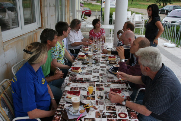 Bei herrlichem Wetter singt der Chor eine Hochzeit mit Taufe im idyllischen Betra. Anschließend gibt es riesige Kuchenstücke im hiesigen Café.