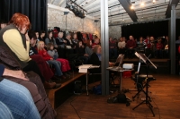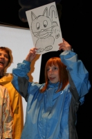 Zwischen den Stücken wurde die Geschichte gemeinsam mit dem Publikum durch Rätselfragen und Texte erarbeitet.