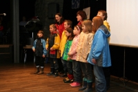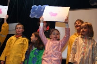 Ein Kinder-Projektchor in Regenzeug stimmte zu Beginn des Abends auf das Thema ein.