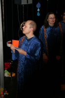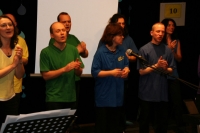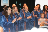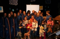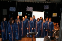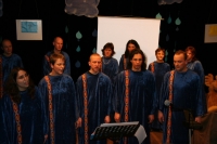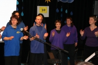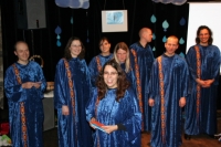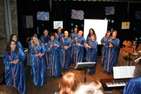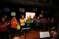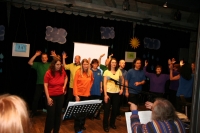 Der Chor hatte den Abend im Horber Kloster dem Thema Noah gewidmet und Stücke, die zum Thema passen, erarbeitet. Zunächst wurde die Zeit vor der Sintflut beschrieben, dazu trug der Chor schwarze Kleidung. Die Zeit der Sintflut wurde in den blauen Gewändern symbolisiert. Als nach der Sintflut die Sonne wieder aufgeht, singt der Chor in Regenbogenfarben.