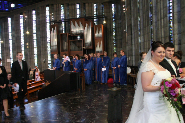 Die Hochzeit im Sommer in der Kirche auf der Liebfrauenhöhe fand bei wunderbarem Wetter statt. Wir sangen in und vor der Kirche.