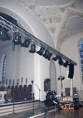 Dem Konzert voraus gingen viele Proben und Arbeitseinsätze, hier zu sehen die Generalprobe und die Aufbauarbeiten.