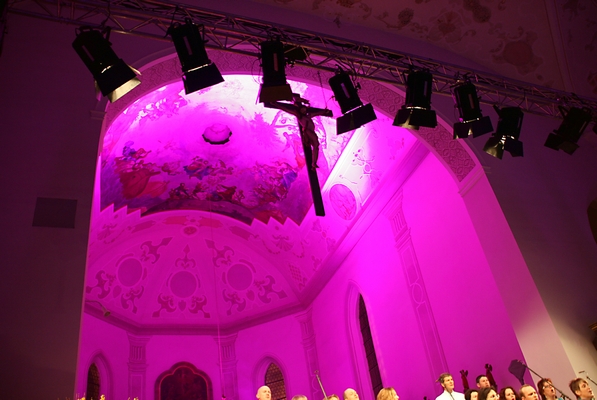 Unterstützt wurde das Jubiläumskonzert des Gospeltrain durch das Team von DTS Soundcheck, das die Stimmung der Stücke durch tolle Lichteffekte unterstrich und den Klang so abmischte, dass der Hall der Kirche aufgefangen wurde.