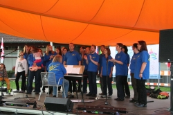 Zum Herbstfest in Horb sangen wir zunächst auf der Hauptbühne auf dem Flößerwasen. Nach einer kurzen Umzugsphase ging es dann auf der Bühne im alten Freibad weiter.